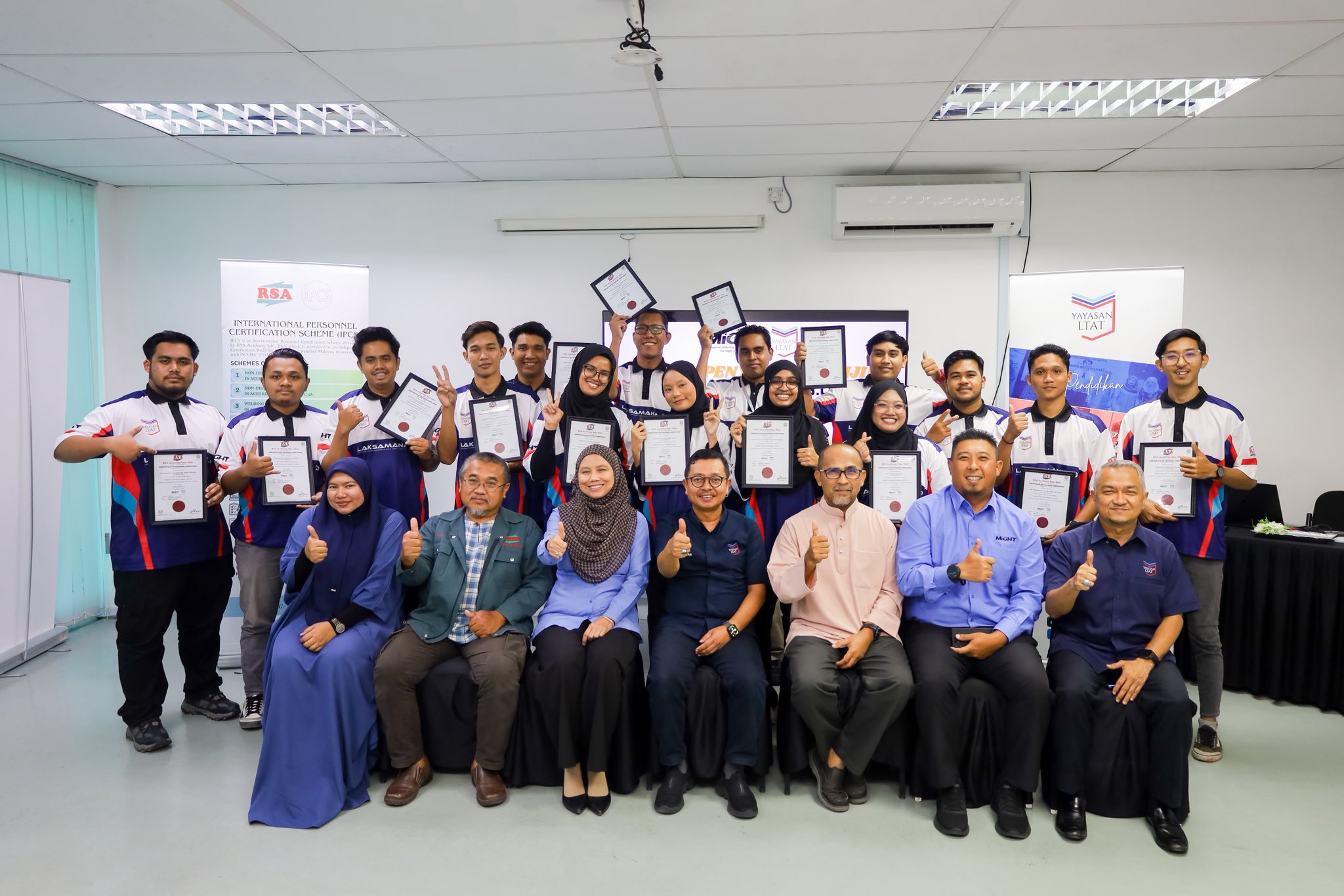 RSA Academy Sdn Bhd, Kemaman | 21 February 2026A total of 15 Cohort 1 participants successfully completed a 14-day intensive Non-Destructive Testing (NDT) training programme held from 8 to 21 February 2026 at RSA Academy, Kemaman, Terengganu.The programme covered structured theory, practical sessions, and industry-standard assessments in Liquid Penetrant Testing (LPT) to ensure participants achieved the required competency before entering industry placement. This initiative is a collaboration between Yayasan LTAT and the Malaysian Industry-Government Group for High Technology (MIGHT), aimed at expanding skills training opportunities for children of serving and veteran Malaysian Armed Forces personnel.Successful participants will undergo a two-month industry placement. Congratulations to Cohort 1 LAKSAMANA 3.0 — you are now industry-ready assets.